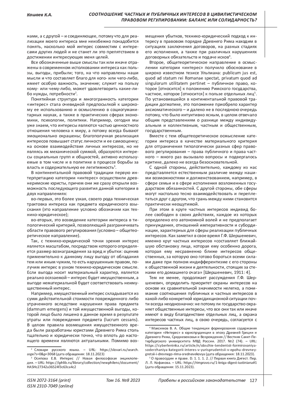 4. 	Максимов В.А. Общие тенденции формирования содержания категории “Интерес” в юриспруденции в эпоху Древней Греции и Древнего Рима, Средневековья и Возрождения // Вестник Санкт-Петербургского университета МВД России. 2017. № 2 (74). - URL: https://cyberleninka.ru/article/n/obschie-tendentsii-formirovaniya-soderzhaniya-kategorii-interes-v-yurisprudentsii-v-epohu-drevney-gretsii-i-drevnego-rima-srednevekovya (дата обращения: 18.11.2023). EDN: ZFLWQP