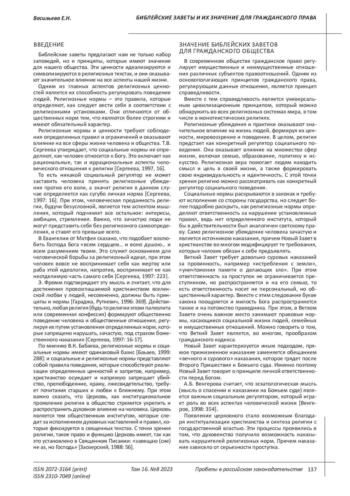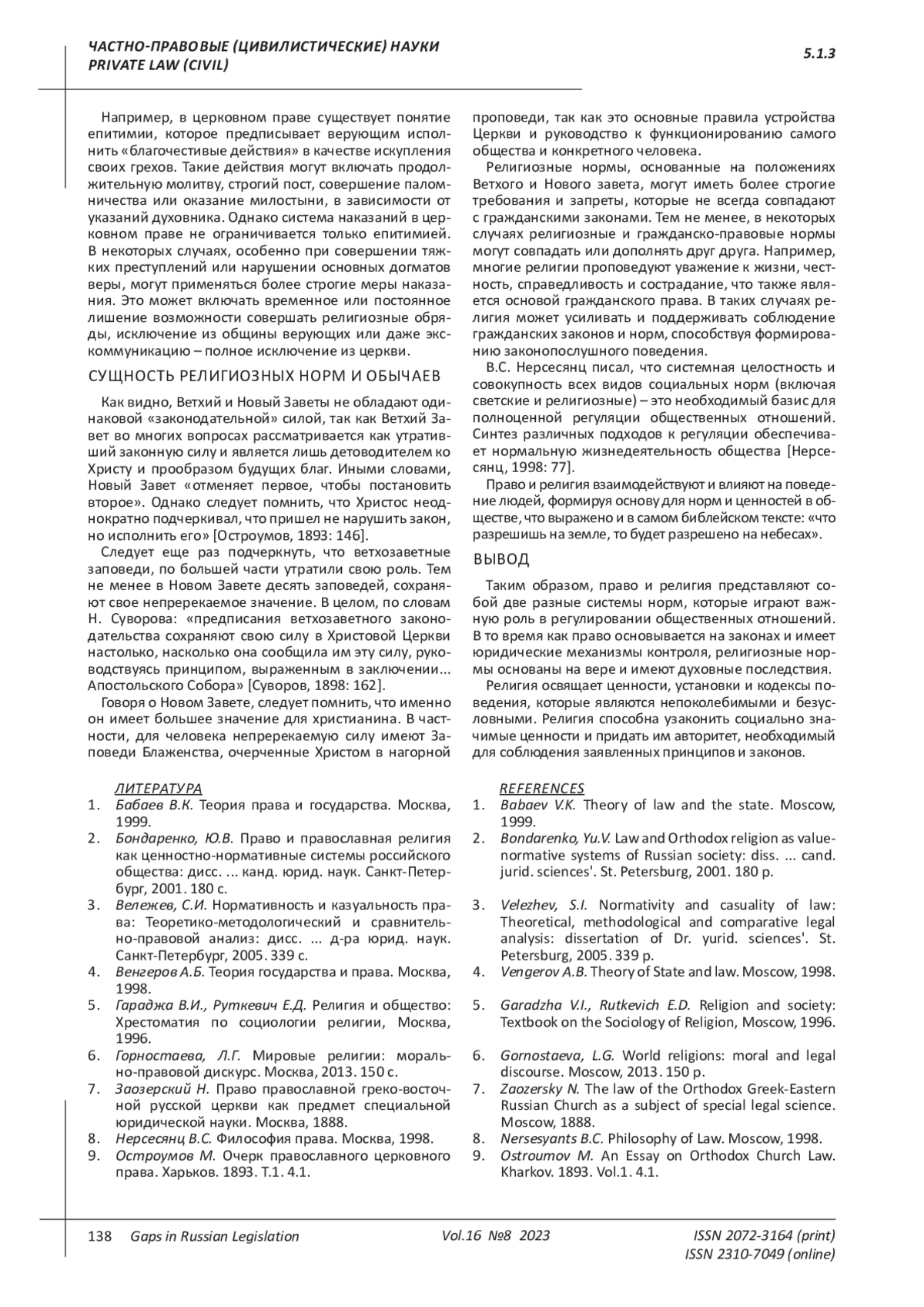 2. Бондаренко, Ю.В. Право и православная религия как ценностно-нормативные системы российского общества: дисс.... канд. юрид. наук. Санкт-Петербург, 2001. 180 с. EDN: NLWXKF