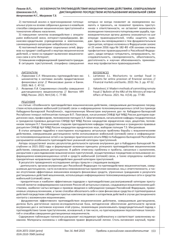 2. 	Яковлева Л.В. Современные способы совершения дистанционного мошенничества // Вестник КРУ МВД России. 2021. №4 (54). С. 77-80. EDN: YFDLEP