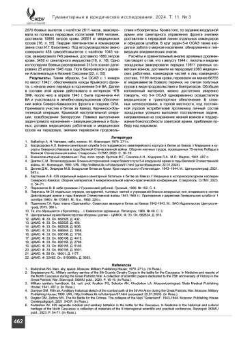 2. Багдасарова А.Л. Военно-санитарная служба 5-го гвардейского кавалерийского корпуса в битве за Кавказ // Медицина и курорты Северного Кавказа в годы Великой Отечественной войны. Сборник научных трудов, посвященных 75-летию Победы в Великой Отечественной войне. Ставрополь: СтГМУ, 2020. С. 16-19.