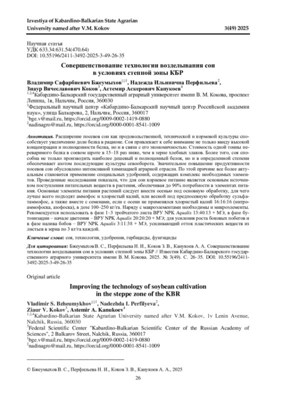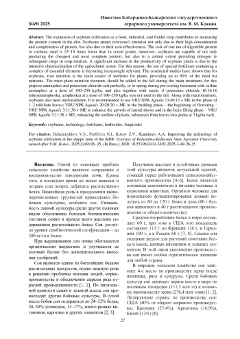 12. Посыпанов Г. С., Князев Б. М., Жеруков Б. Х. Формирование урожая сои в зависимости от инокуляции семян, орошения и режима минерального питания // Известия Тимирязевской сельскохозяйственной академии. 1990. № 10. С. 43-44.