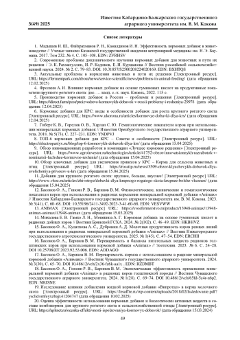 20. 	Оценка эффективности использования кормовых добавок и биологически активных веществ в составе комбикормов для крупного рогатого скота и сельскохозяйственной птицы [Электронный ресурс]. URL: https://apknet.ru/ocenka-effektivnosti-ispolzovaniya-kormovyx-dobavok/ (дата обращения 15.03.2024).