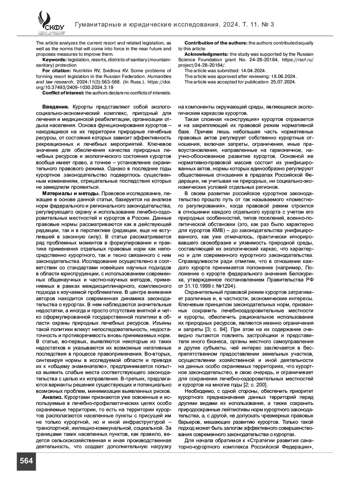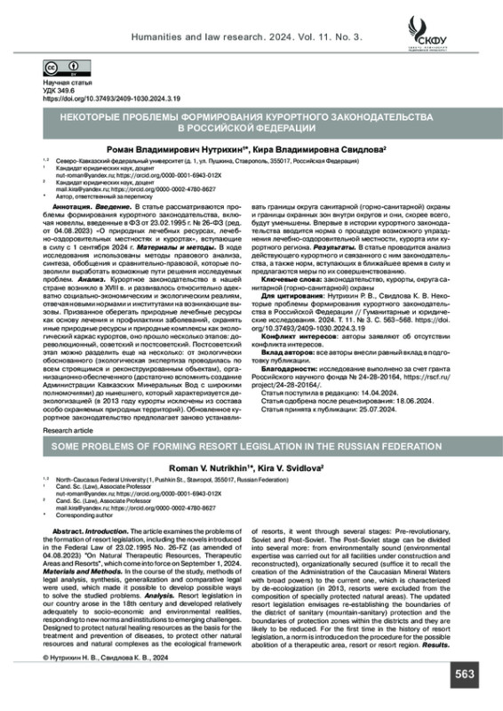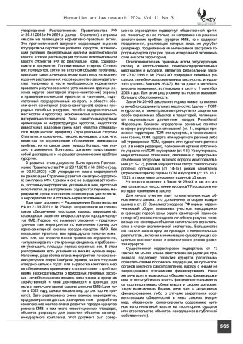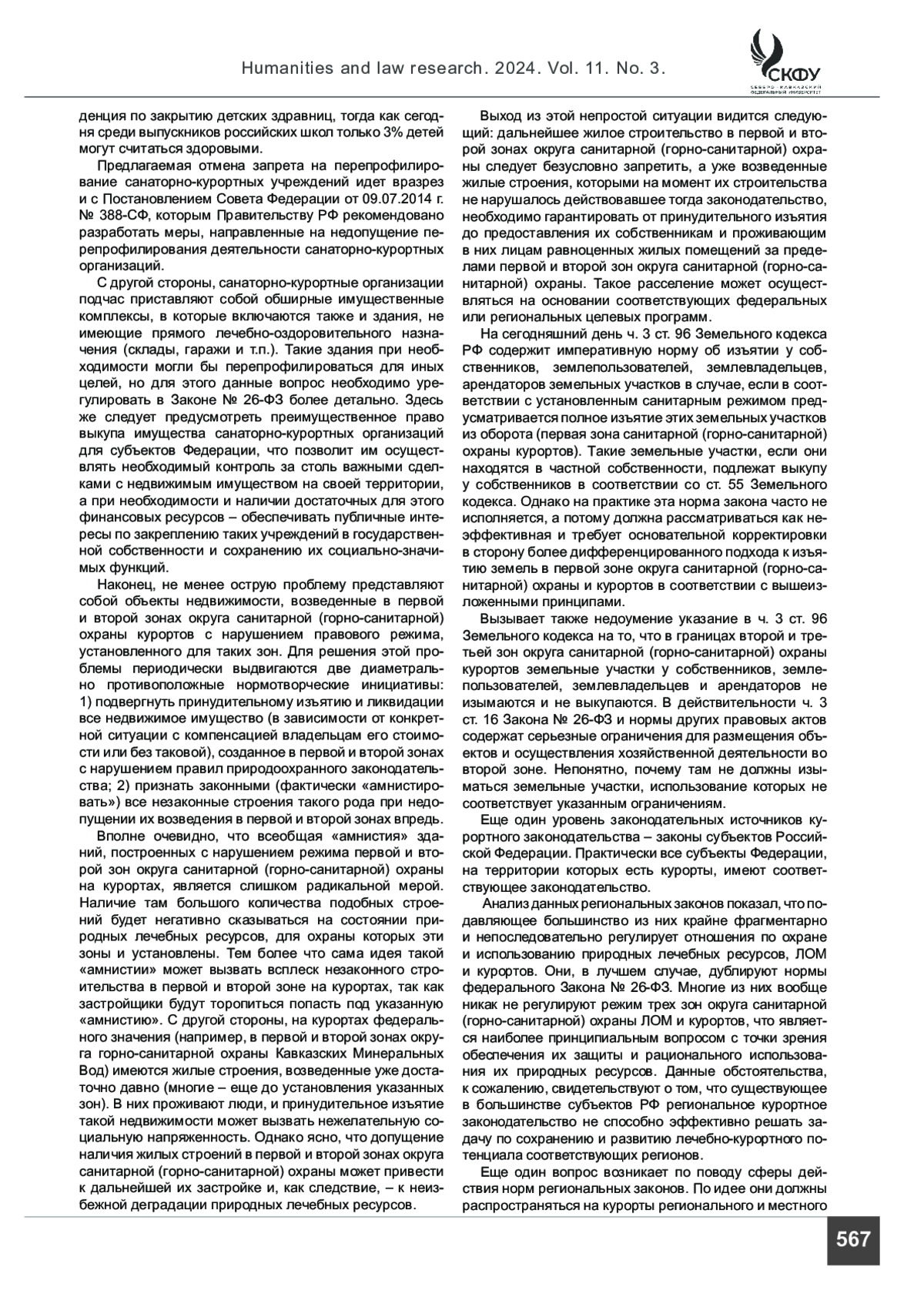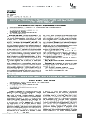 Результаты. В статье проводится анализ действующего курортного и связанного с ним законодательства, а также норм, вступающих в ближайшее время в силу и предлагаются меры по их совершенствованию.