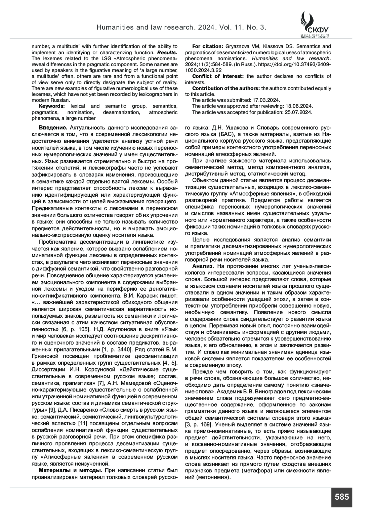 4. Грязнова В. М. Лексикографическая фиксация семантических процессов в русской разговорной речи (на материале многозначных существительных) // Вестник Томского государственного университета. 2022. № 484. С. 27-34.