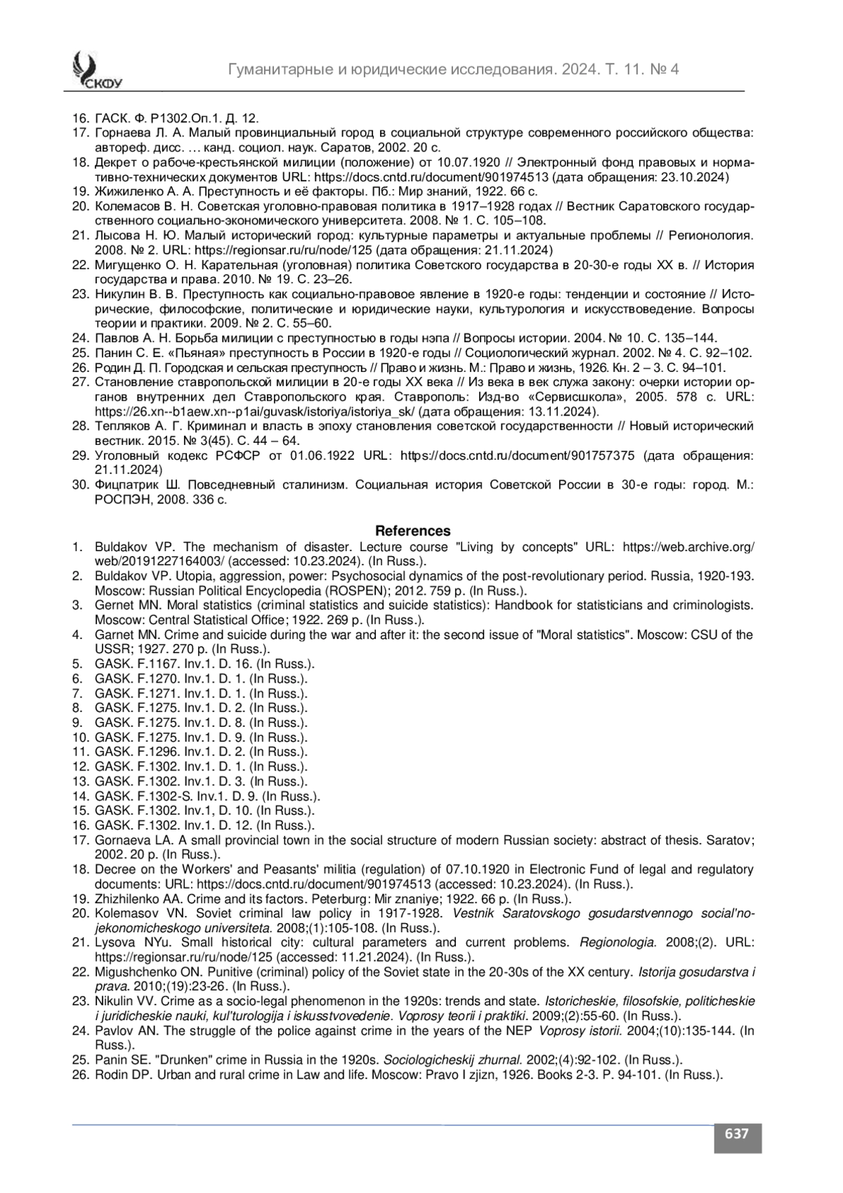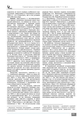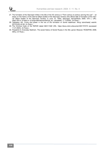 23. Никулин В. В. Преступность как социально-правовое явление в 1920-е годы: тенденции и состояние // Исторические, философские, политические и юридические науки, культурология и искусствоведение. Вопросы теории и практики. 2009. № 2. С. 55-60.