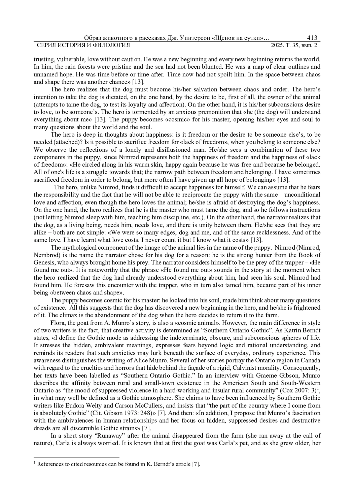 7. 	Berndt K. The Ordinary Terrors of Survival: Alice Munro and the Canadian Gothic // Journal of the Short Story in English (JSSE). 2010. № 55. URL: https://journals.openedition.org/jsse/1079 (дата обращения: 13.08.2024).