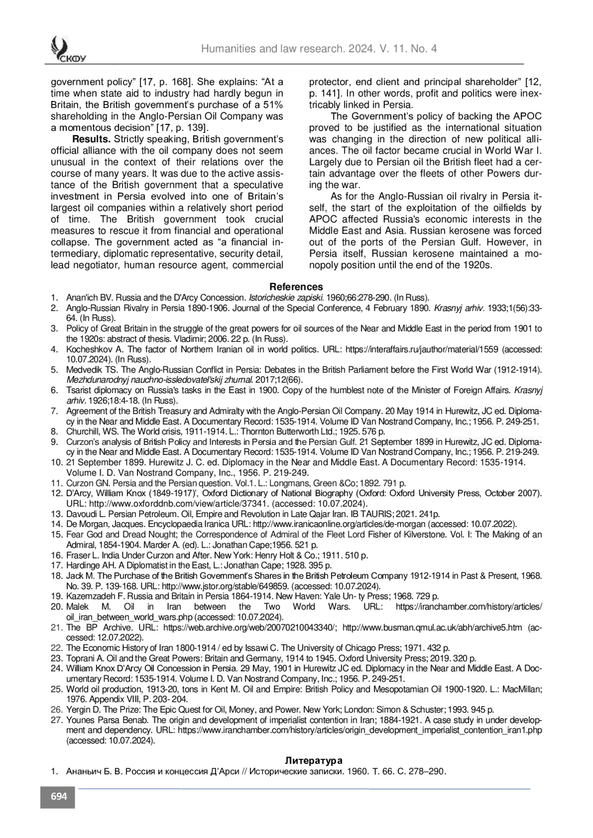 1. Ананьич Б. В. Россия и концессия Д’Арси // Исторические записки. 1960. Т. 66. С. 278-290.