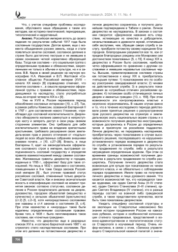Материалы и методы. Принцип сословности в нормативном обеспечении благотворительного процесса в Российской империи и избранная к изучению проблема истории благотворительности дворян в условиях возникновения новых социальных общностей и неизбежного сглаживания сословных различий логично предопределили особое внимание к уточнению признаков сословий. В качестве базового был избран перечень признаков сословий, предложенный М. И. Лавицкой и А. В. Мельниковым,- «1) каждое сословие имеет специфические права и социальные функции, которые закреплены юридически в обычае или законе; 2) сословные права передаются по наследству; 3) наличие сословных корпоративных организаций, осуществляющих сословное общественное управление; 4) специфический менталитет и самосознание сословий». Исследование проведено с использованием материалов Государственного архива Ставропольского края. Что, с учетом специфики проблемы исследования, обусловило обращение к таким его методам, как историко-генетический, периодизации, типологический и нарративный.