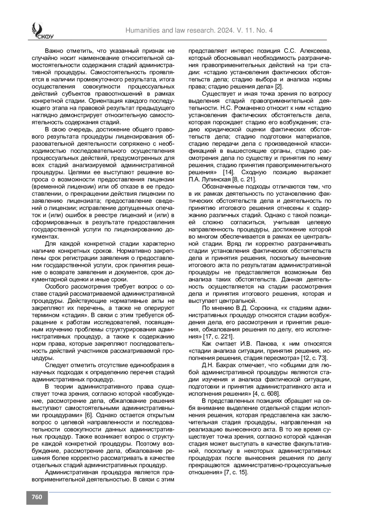 Анализ. Для стадий административной процедуры лицензирования образовательной деятельности в сфере высшего образования прежде всего характерно наличие общих признаков стадий административных процедур. Однако в науке существуют различные точки зрения относительно состава стадий рассматриваемой процедуры.