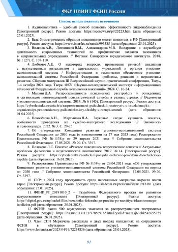13. 	Член СПЧ Меркачева рассказала о двух подряд нападениях на сотрудников ФСИН в “Бутырке”. [Электронный ресурс]. Режим доступа: https://www.fontanka.ru/2023/04/19/72234836 (дата обращения: 25.01.2025).