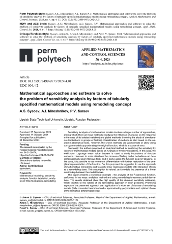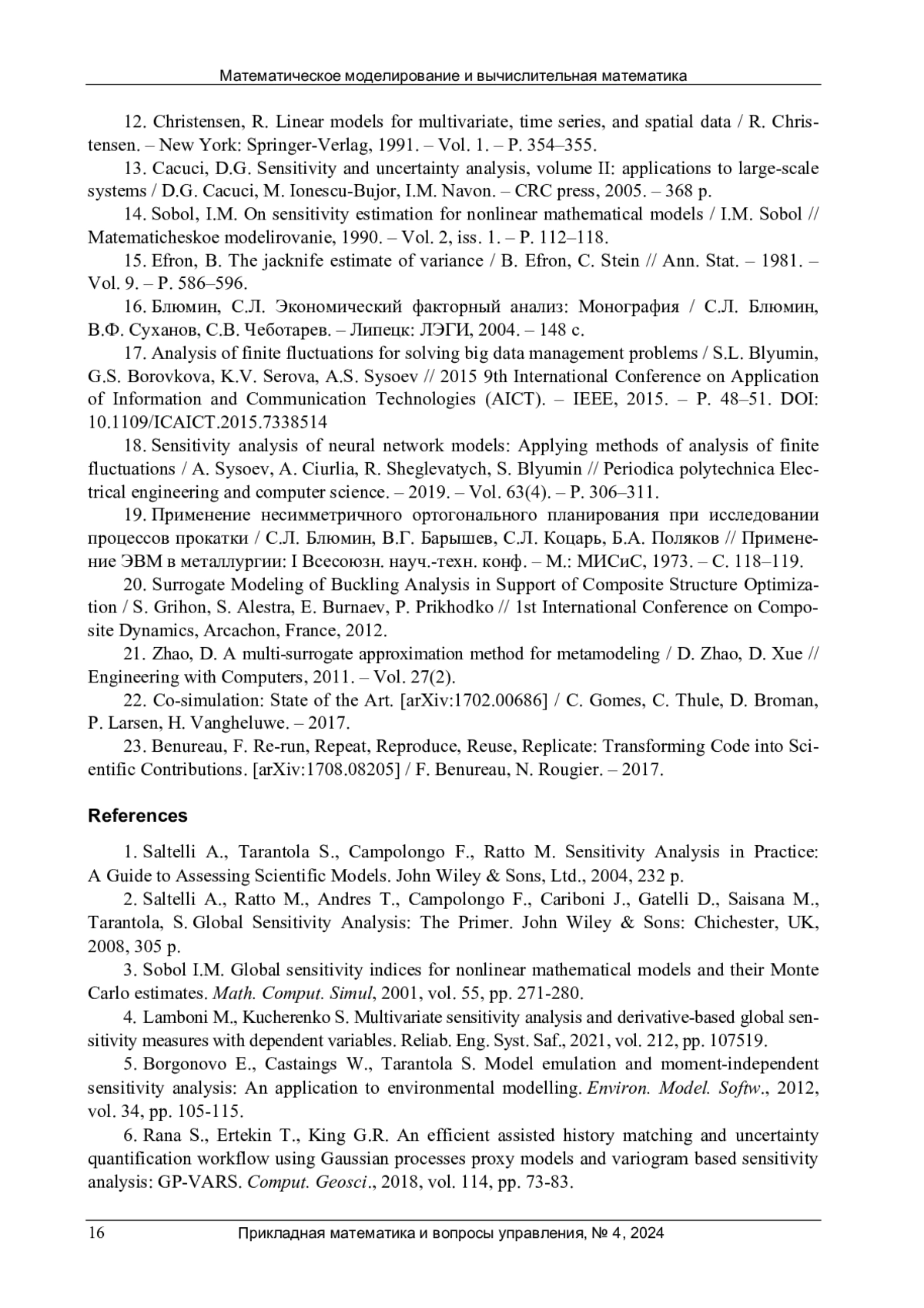 4. Lamboni, M. Multivariate sensitivity analysis and derivative-based global sensitivity measures with dependent variables / M. Lamboni, S. Kucherenko // Reliab. Eng. Syst. Saf. - 2021. - Vol. 212. - P. 107519.