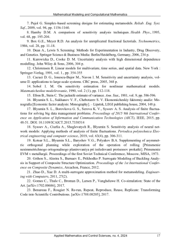 7. Pujol, G. Simplex-based screening designs for estimating metamodels / G. Pujol // Reliab. Eng. Syst. Saf. - 2009. - Vol. 94. - P. 1156-1160.