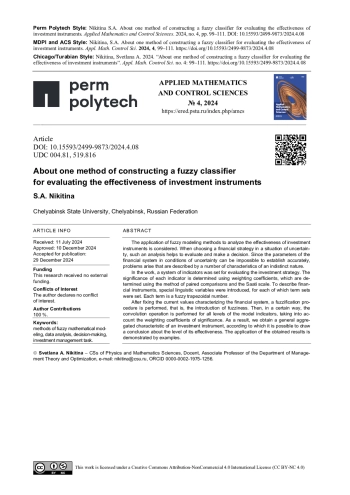 4. Поляков, Д.В. Оптимизация и управления финансовой деятельностью на основе теории нечетких множеств / Д.В. Поляков, А.И. Попов // Вестник ТГТУ. - 2020. - Т. 26, № 1. - С. 64-78. DOI: 10.17277/vestnik.2020.01.pp.064-078