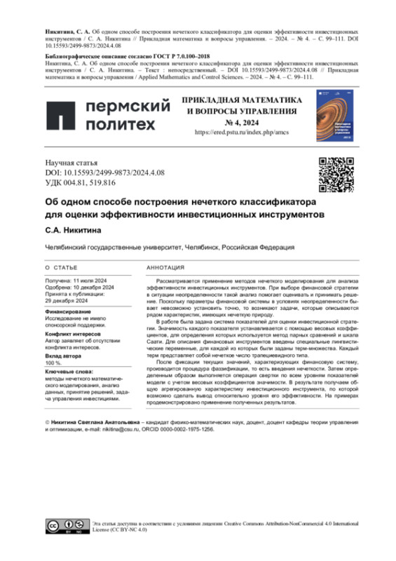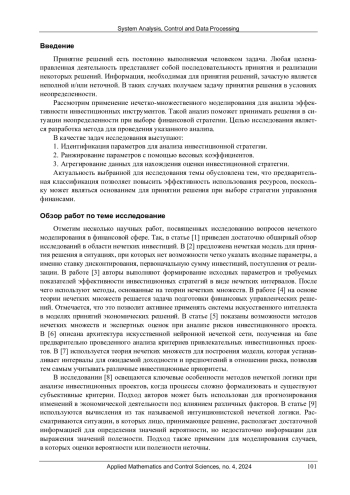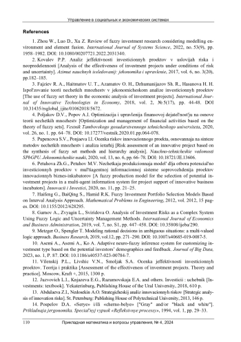 1. Zhou, W. Review of fuzzy investment research considering modelling environment and element fusion / W. Zhou, D. Luo, Z. Xu // International Journal of Systems Science. - 2022. - № 53(9). - P. 1958-1982. DOI: 10.1080/00207721.2022.2031340 EDN: GTQGSX
