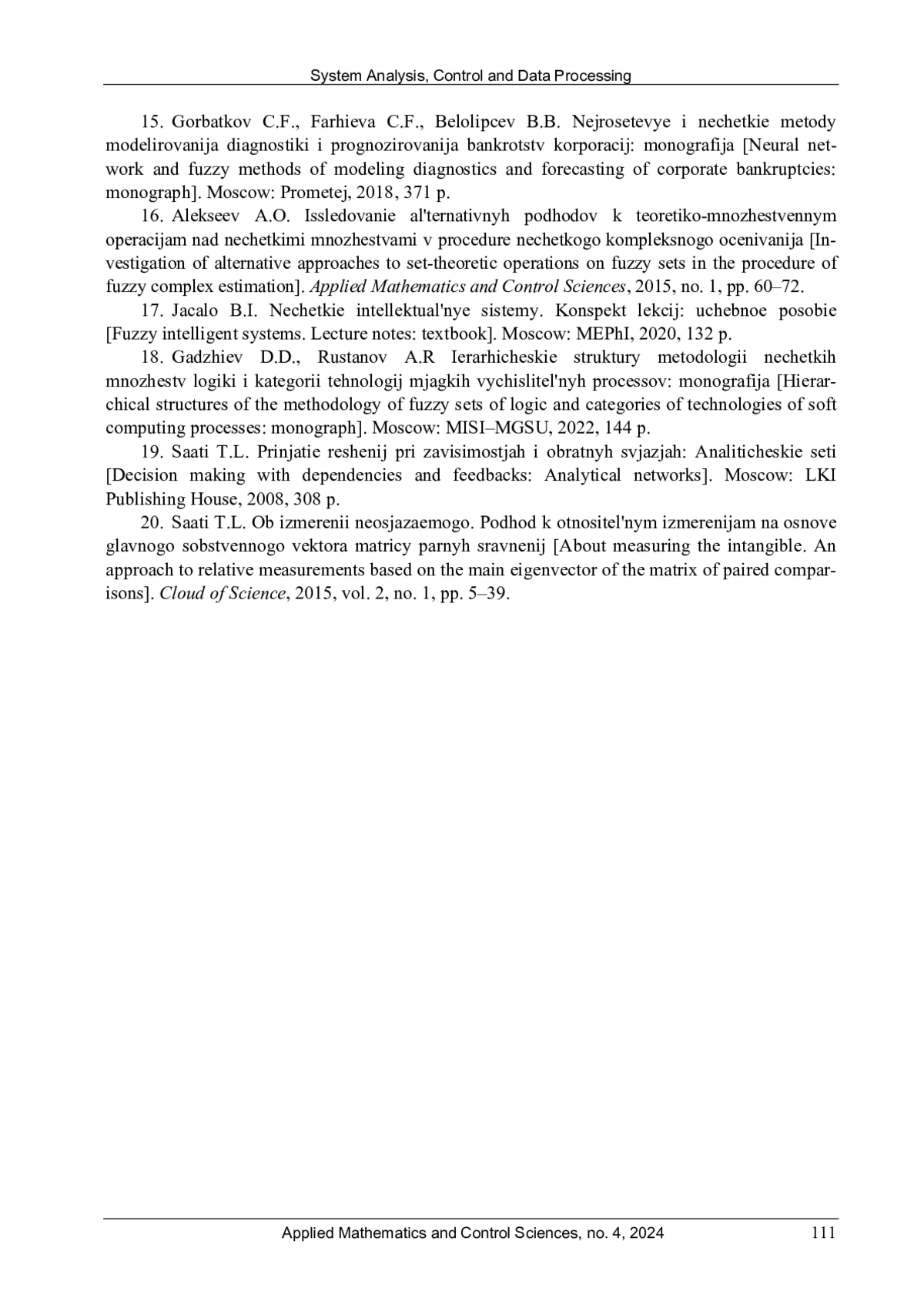 16. Алексеев, А.О. Исследование альтернативных подходов к теоретико-множественным операциям над нечеткими множествами в процедуре нечеткого комплексного оценивания / А.О. Алексеев // Прикладная математика и вопросы управления. - 2015. - № 1. - С. 60-72.