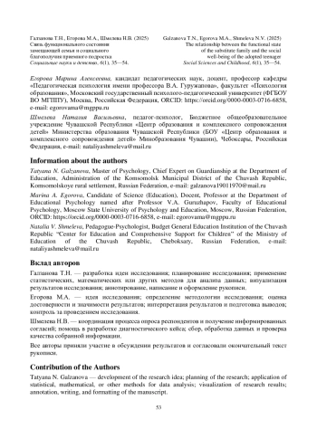 12. Махнач, А.В., Лактионова, А.И., Постылякова, Ю.В., Лотарева, Т.Ю. (2018). Жизнеспособность замещающей семьи: профилактика отказов от приемных детей. М.: Институт психологии РАН. EDN: YMGEST