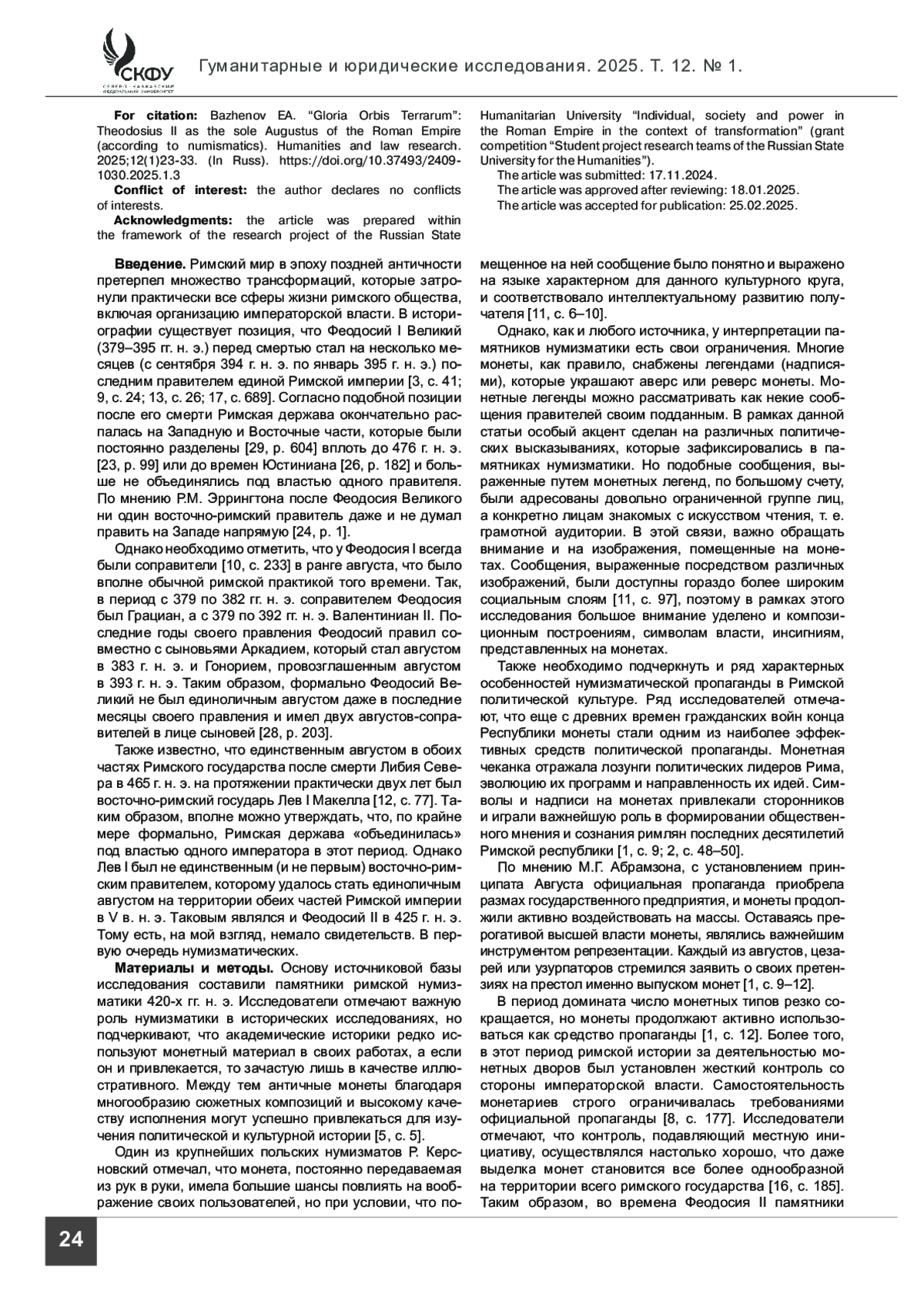 13. Кузнецов В. Н. Проблемы социально-экономического реформирования Римской империи в эпоху Феодосия Великого // Казанская наука. 2015. № 8. С. 26-29.