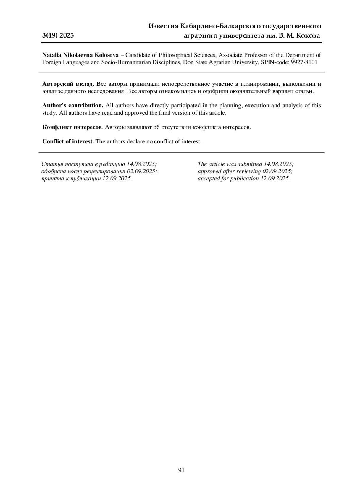 3. 	Некоторые особенности экстерьера молодняка различного происхождения / Ю. А. Колосов, И. В. Засемчук, Т. С. Романец, М. Е. Маенко // Вестник Донского государственного аграрного университета. 2014. № 2(12). С. 19-25. EDN: SIZKKN