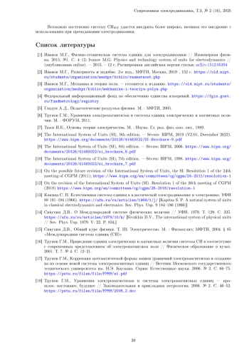 16. Трунов Г.М., Приведение единиц электрических и магнитных величин системы СИ в соответствие с современным представлением об электромагнитном поле // Физическое образование в вузах. 2001. Т. 7. № 4. С. 12-21.