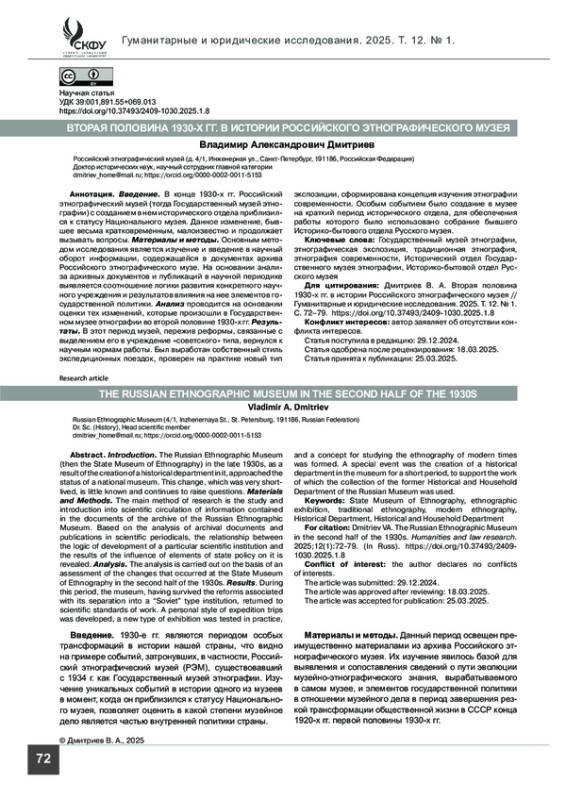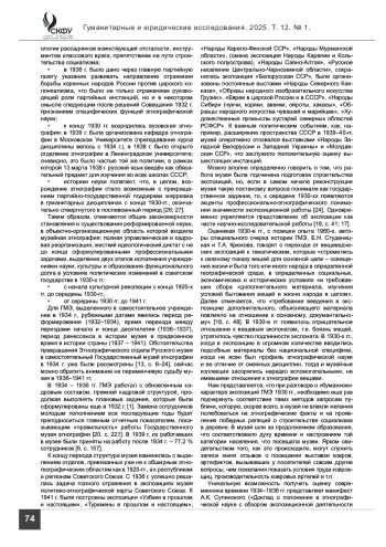 Анализ проводится на основании оценки тех изменений, которые произошли в Государственном музее этнографии во второй половине 1930-х гг.