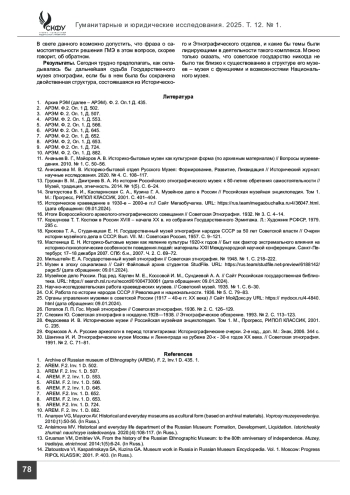 30. Шангина И. И. Этнографические музеи Москвы и Ленинграда на рубеже 20-х 30-х годов XX века. // Советская этнография. 1991. № 2. С. 71-81.