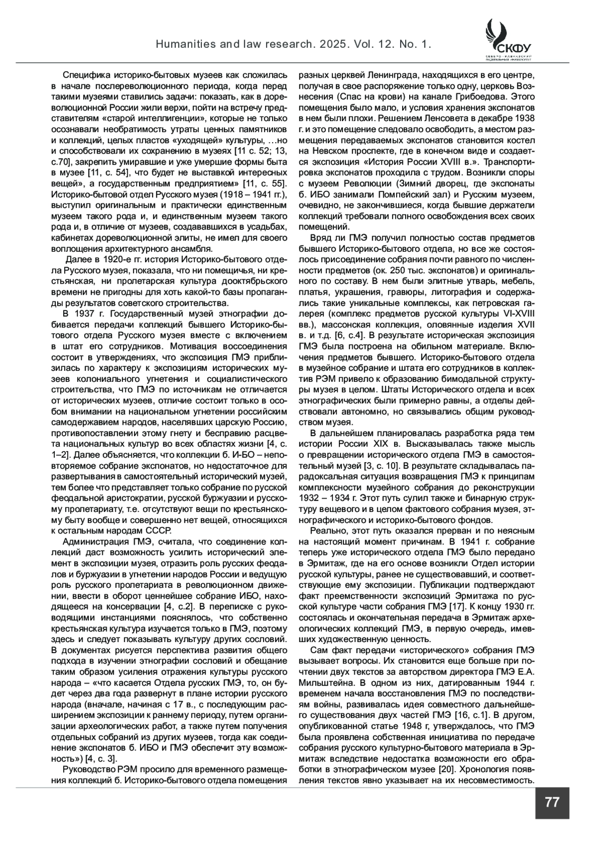 12. Анисимова М. В. Историко-бытовой отдел Русского Музея: Формирование, Развитие, Ликвидация // Исторический журнал: научные исследования. 2020. № 4. С. 108-117.