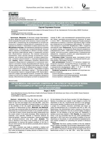 Анализ. Работа посвящена изучению деятельности городского общественного управления по улучшению санитарного состояния города. В дореформенный период «отцы города» практически не соблюдали санитарных норм. В 1888 г. было принято решение об образовании медико-полицейской комиссии по городам Ростову и Нахичевани-на-Дону под руководством санитарных врачей г. Ростова-на-Дону. По инициативе гласного городской Думы И. М. Келле-Шагинова был создан Санитарный комитет, который был обязан следить за чистотой в городе, следил за вывозом городского мусора, обеспечением санитарных условий на предприятиях города. В 1901 г. при нахичеванской городской был составлен проект санитарно-исполнительного комитета. В связи с этим в 1901 г., Нахичеванская городская Управа проводит совещание по вопросу о принятии санитарных мер в городе для профилактики острозаразных заболеваний. По инициативе городского головы М. И. Балабанова в 1904 г. создается санитарный совет.