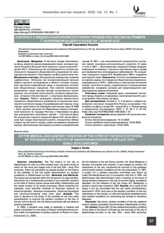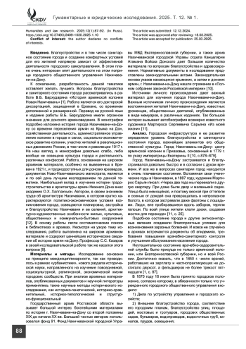 Введение. В История города Нахичеванина-Дону, является малоисследованной темой, активное изучение которой в большей части началось только в конце ХХ – начале XXI в. Специальных же исследований по истории деятельности городского общественного управления по санитарному состоянию в г. Нахичевани-на-Дону практически нет.