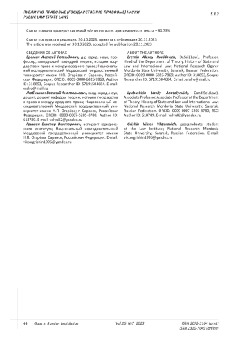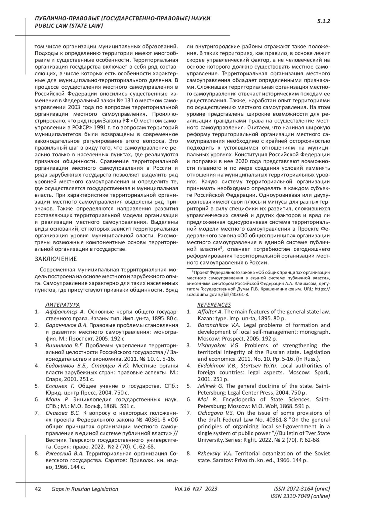 Vishnyakov V.G. Problems of strengthening the territorial integrity of the Russian state. Legislation and economics. 2011. No. 10. Pp. 5-16. (In Russ.).