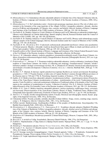 10. Миннияхметова Т. Г. Календарные обряды закамских удмуртов. Ижевск: УИИЯЛ УрО РАН, 2000. 168 с.
