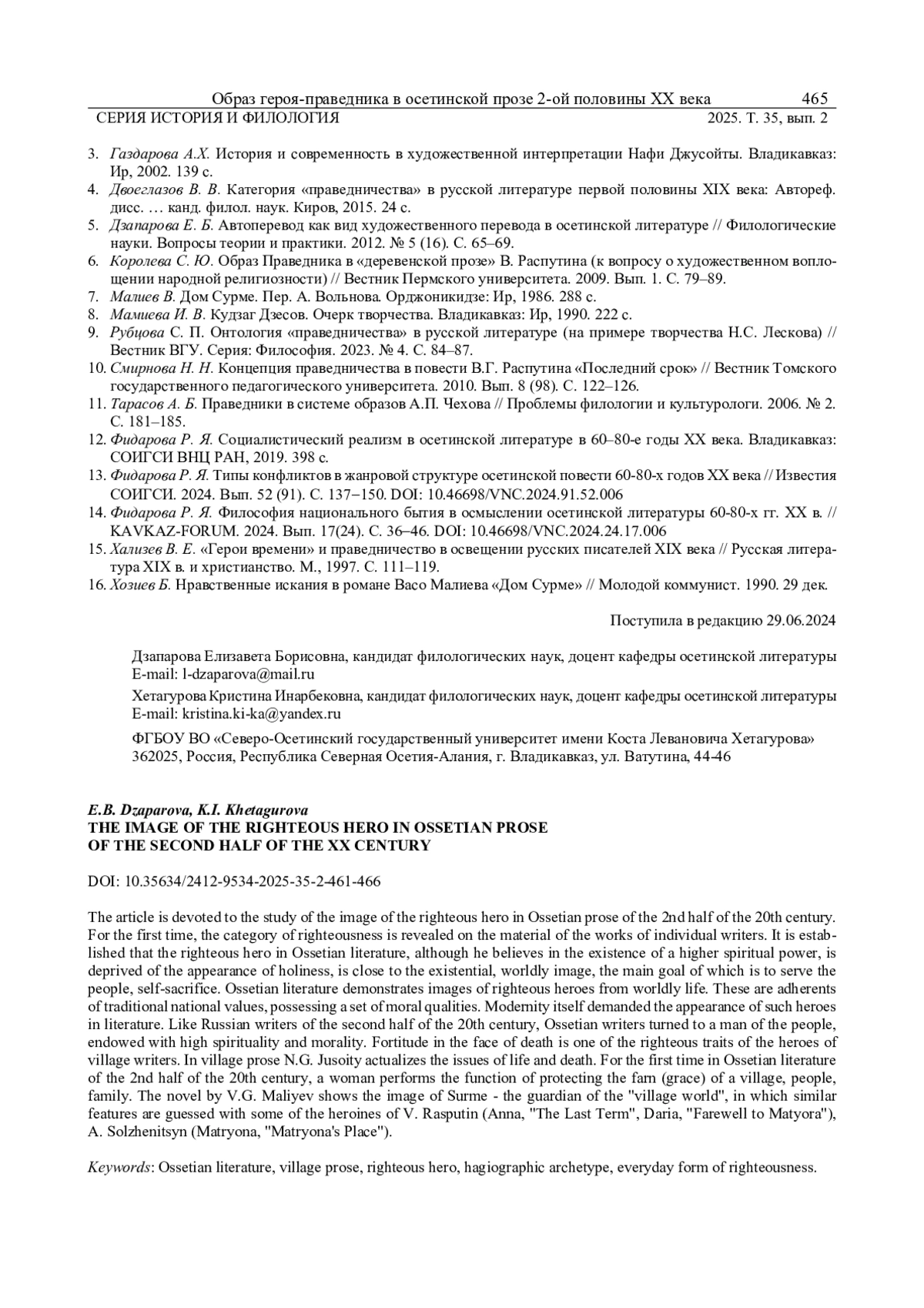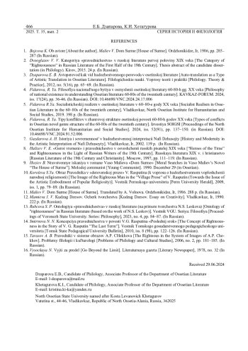 13. Фидарова Р. Я. Типы конфликтов в жанровой структуре осетинской повести 60-80-х годов ХХ века // Известия СОИГСИ. 2024. Вып. 52 (91). С. 137-150. DOI: 10.46698/VNC.2024.91.52.006