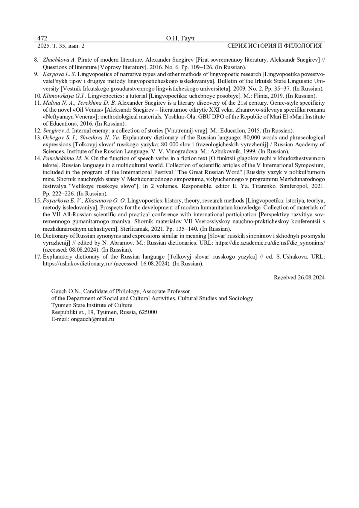 5. 	Грязнова А. Т. Лингвопоэтический анализ художественного текста: подходы и направления: монография. М.: МПГУ, 2018. EDN: ZHDKPB
