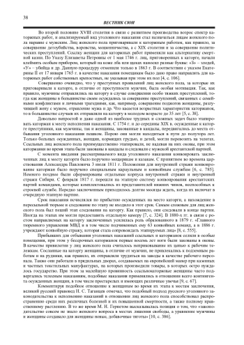 9. Максимова В. Н. Женская уголовная ссылка в Сибирь во второй половине XIX - начале XX в.: причины и состав женской преступности // Труды Братского государственного университета. Серия: Гуманитарные и социальные проблемы развития регионов Сибири. 2010. Т. 1. № 1. С. 66-69. EDN: SQTPNX