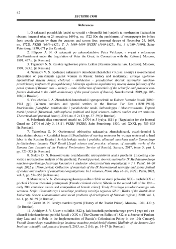 16. Солоницын П. С. Женщины-каторжанки в России в начале ХХ в. // Юридическая наука и практика: альманах научных трудов Самарского юридического института ФСИН России. Самара: Самарский юридический институт ФСИН России, 2022. Вып. 10. Ч. 2. С. 155-158. EDN: NKBHGY