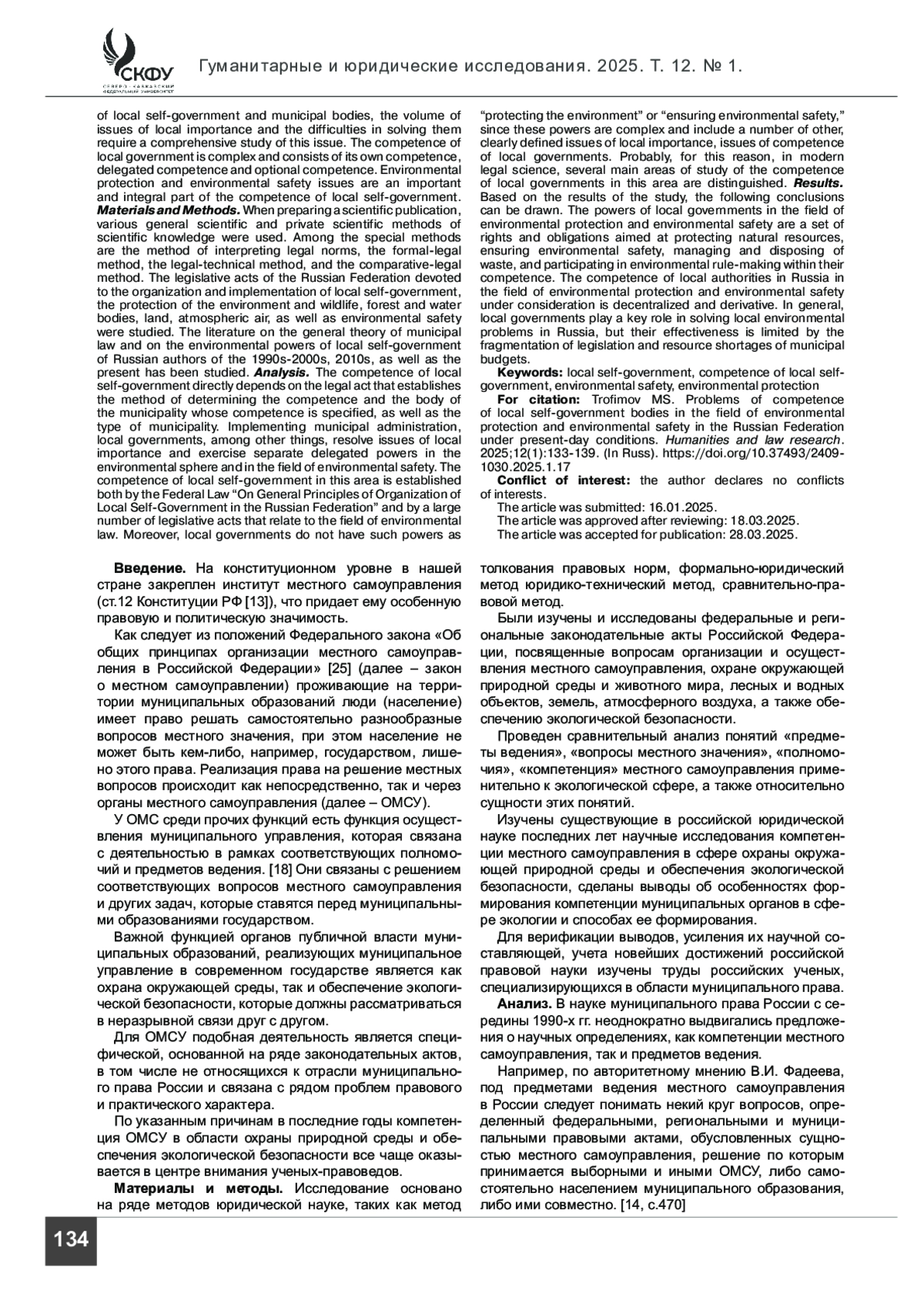 5. Воробьева Д. С. Полномочия органов местного самоуправления в сфере охраны окружающей среды: некоторые проблемные аспекты // Государственная власть и местное самоуправление. 2024. № 12. С.25-29.