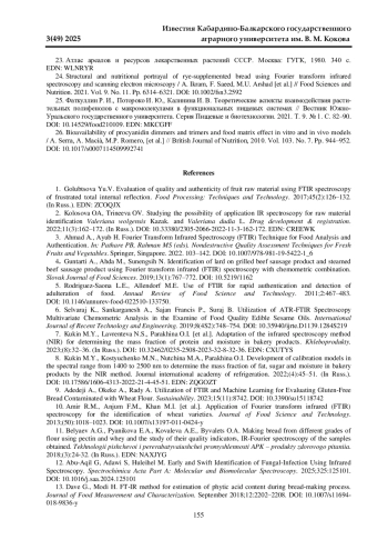 13. 	Dave G., Modi H. FT-IR method for estimation of phytic acid content during bread-making process // Journal of Food Measurement and Characterization. 2018. Vol. 12. Pp. 2202-2208. DOI: 10.1007/s11694-018-9836-y