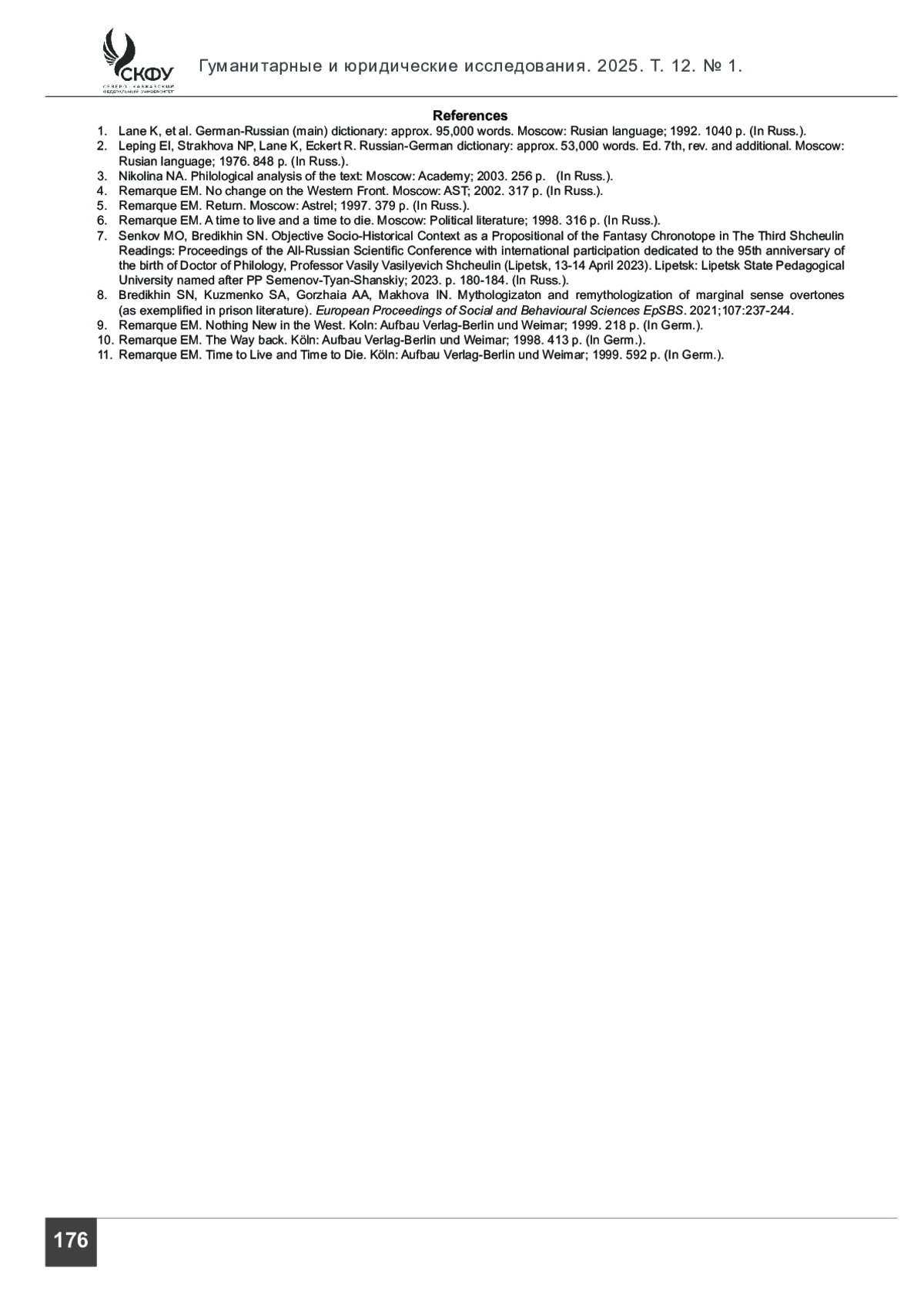 8. Bredikhin S. N., Kuzmenko S. A., Gorzhaia A. A., Makhova I. N. Mythologizaton and remythologization of marginal sense overtones (as exemplified in prison literature) // European Proceedings of Social and Behavioural Sciences EpSBS. 2021. Vol. 107. P. 237-244.