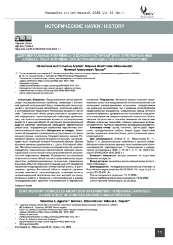 1. Агеева В. А., Трапш Н. А. Насильственное перемещение гражданского населения города Таганрога на принудительные работы в Третий рейх: опыт комплексной характеристики // Известия Коми научного центра Уральского отделения Российской академии наук. Серия «История и филология». 2023. № 5(63). С. 158-165.