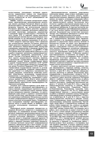 Анализ. Проведенное исследование позволило уточнить общий состав и содержательные характеристики дифференцированных документов, отражающих значимые события тотального геноцида мирного советского населения в период Великой Отечественной войны. В региональных архивах Ростовской области имеются документальные комплексы, характеризующие различные аспекты целенаправленной депортации местных жителей на принудительные работы в Германию и использованные в рамках исследовательской практики отечественных и зарубежных историков.