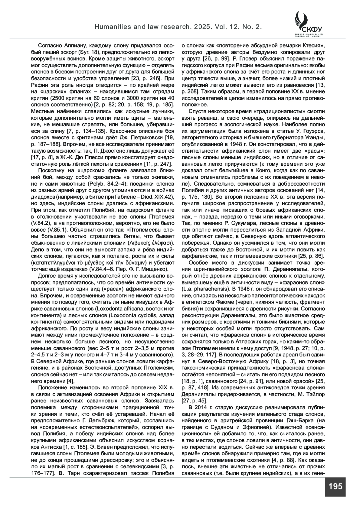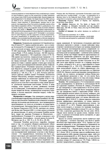 6. Charles M. B. The African Elephants of Antiquity Revisited: Habitat and Representational Evidence // Historia. 2020. Vol. 69. No. 4. P. 392-407.