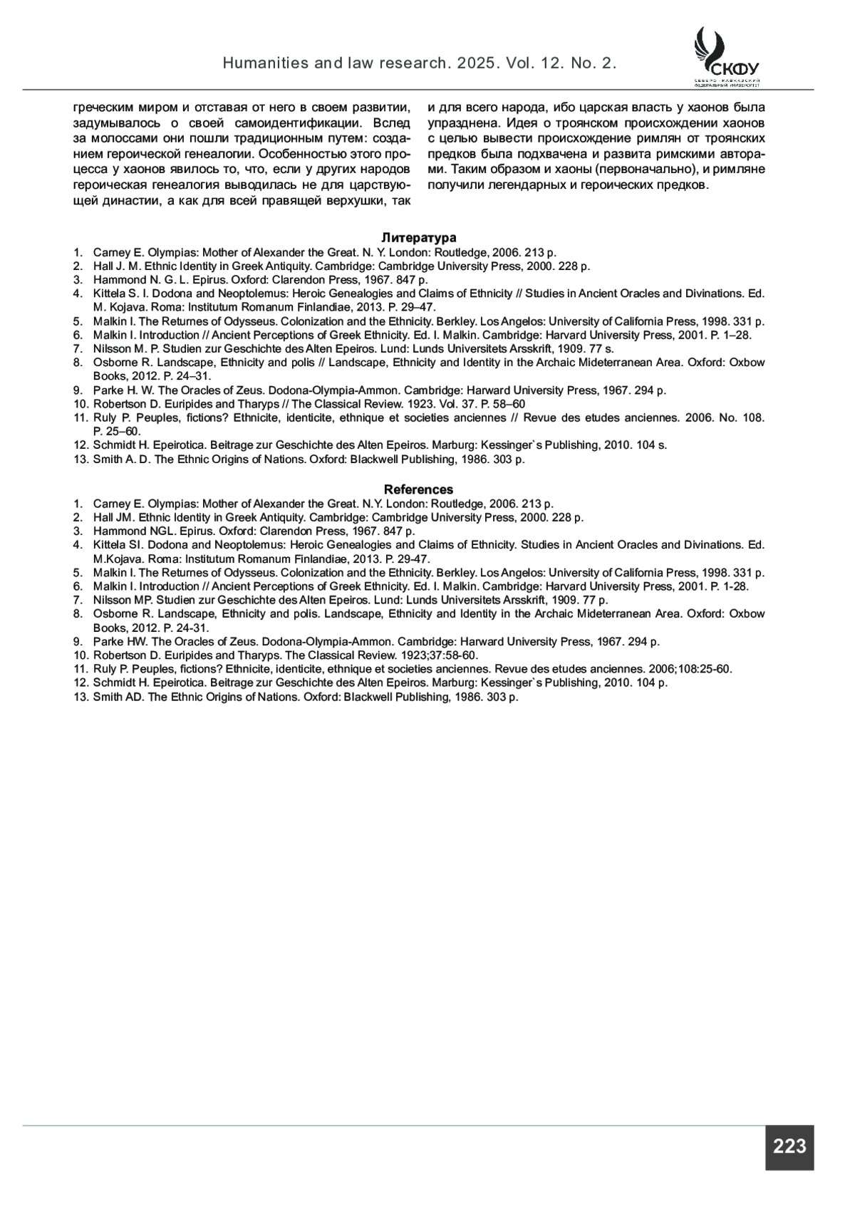 4. Kittela S. I. Dodona and Neoptolemus: Heroic Genealogies and Claims of Ethnicity // Studies in Ancient Oracles and Divinations. Ed. M. Kojava. Roma: Institutum Romanum Finlandiae, 2013. P. 29-47.