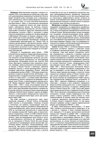 Введение. Операция по поддержанию мира в Южной Осетии являлась первой миротворческой миссией на постсоветском пространстве. Она имела ряд особых черт, которые представляют научный и практический интерес в контексте миротворческой деятельности на территории бывшего СССР. Однако в историографии тема по-прежнему остаётся малоизученной, поскольку исследователи ранее не проводили системного и целостного анализа операции в Южной Осетии.