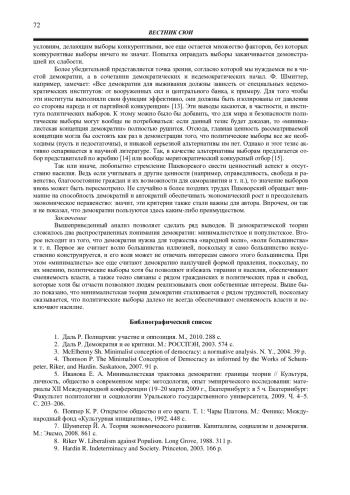 4. 	Thomson P. The Minimalist Conception of Democracy as informed by the Works of Schumpeter, Riker, and Hardin. Saskatoon, 2007. 91 p.