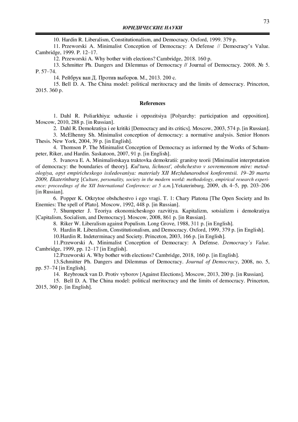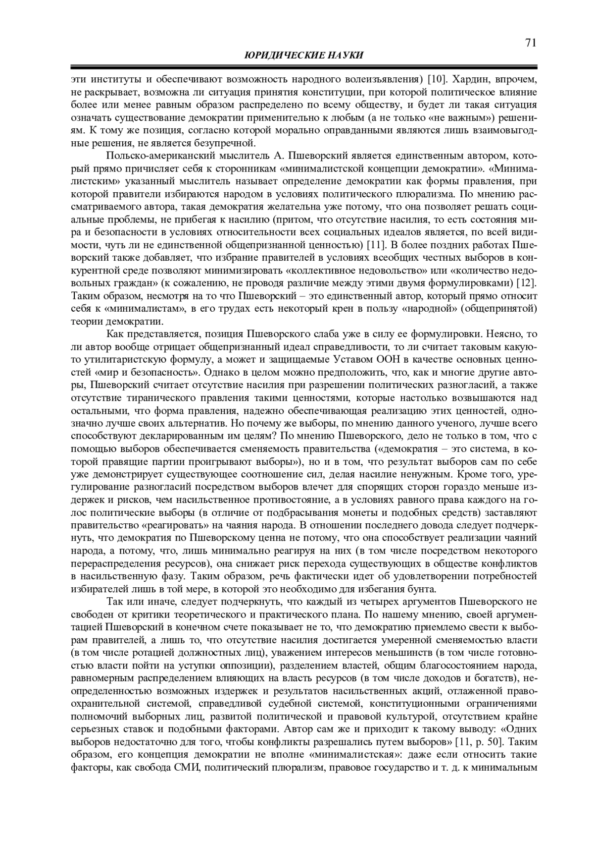 11. 	Przeworski A. Minimalist Conception of Democracy: A Defense // Democracy’s Value. Cambridge, 1999. P. 12-17.