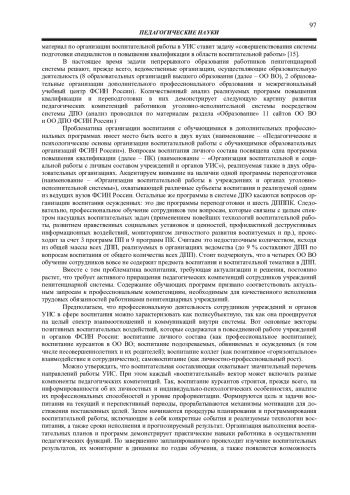В статье рассматриваются вопросы дополнительного профессионального образования сотрудников уголовно-исполнительной системы в сфере развития педагогических компетенций; анализируются и обобщаются результаты практик повышения квалификации в системе дополнительного профессионального образования образовательных организаций ФСИН России; предлагаются варианты обновления системы непрерывного образования взрослых по актуальным вопросам воспитания и личностного развития.