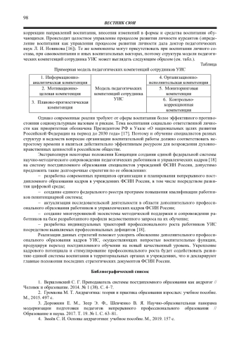 8. 	Панарин Д. А., Брыков Д. А. Направления совершенствования работы с кадрами в уголовно-исполнительной системе // Человек: преступление и наказание. 2017. Т. 25. № 1. С. 99-101. EDN: VZHIDP