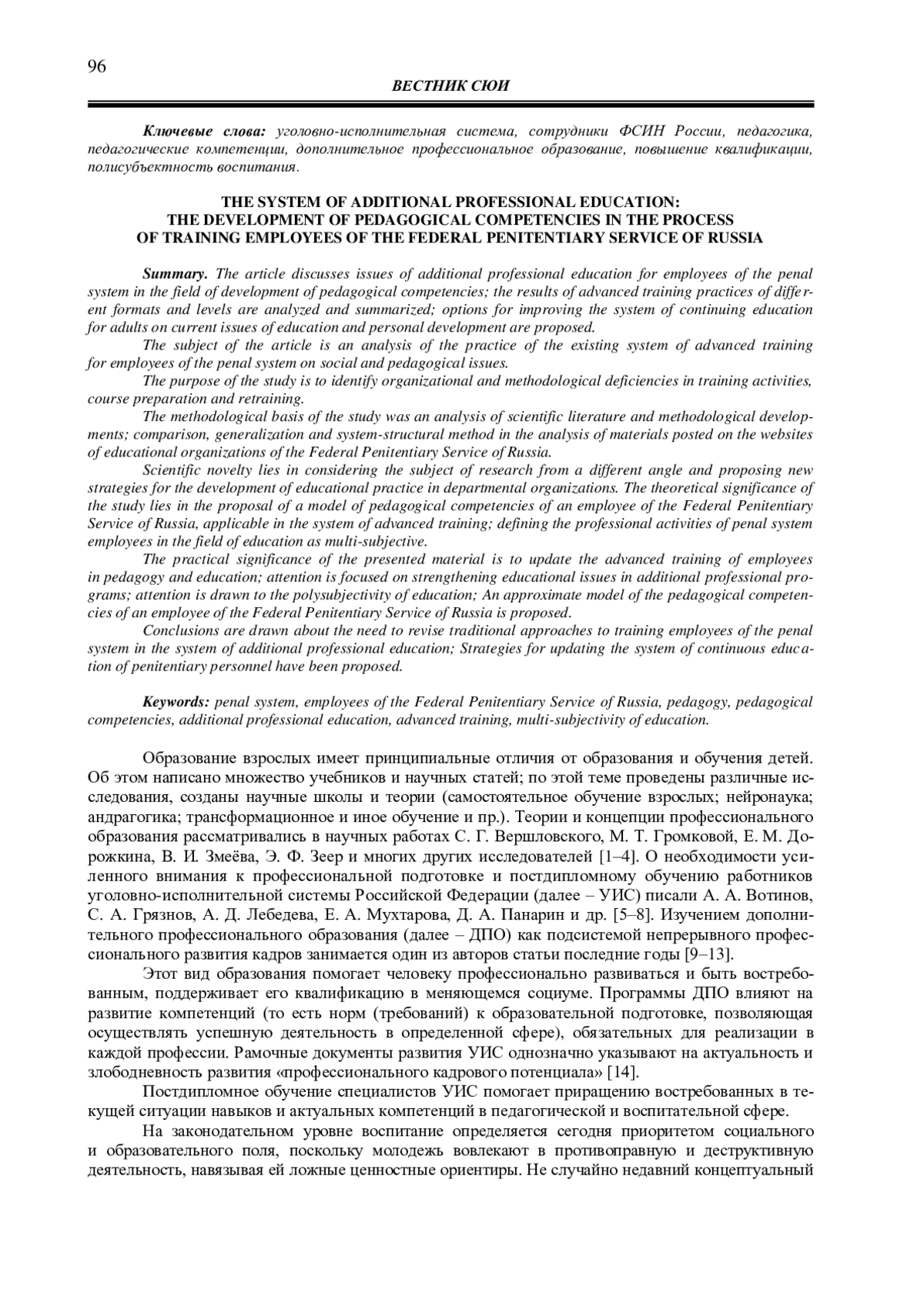 5. 	Вотинов А. А., Грязнов С. А. Организация повышения квалификации сотрудников УИС // Вестник Самарского юридического института: научно-практический журнал. 2017. № 1 (23). С. 91-95.