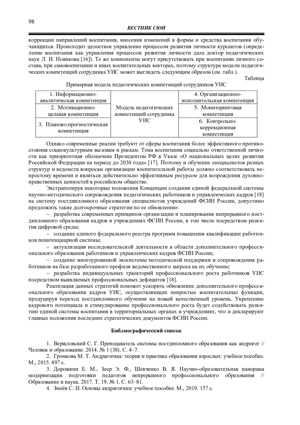 1. 	Вершловский С. Г. Преподаватель системы постдипломного образования как андрогог // Человек и образование. 2014. № 1 (38). С. 4-7.