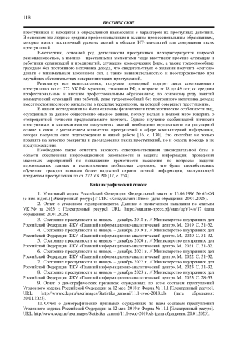 8. 	Состояние преступности за январь - декабрь 2023 г. // Министерство внутренних дел Российской Федерации ФКУ “Главный информационно-аналитический центр”. М., 2023. С. 28-33.