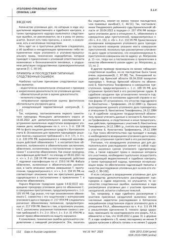 Цель исследования. Последние пол века ученые и практики ломают голову над проблемой минимизации следственных ошибок. Да, объективно, их (ошибок) становится меньше, но фактически это связано с общей тенденцией снижения количества совершенных преступлений, а потому поводом для успокоения быть не может. От этих негативных примеров из практики страдают и участники уголовного судопроизводства, и репутация органов правоохраны. Что делать, как быть, что предпринять - вот те вопросы, которые постоянно задаются в ходе осуществления судебного контроля, прокурорского надзора, а также ведомственного (процессуального) контроля. В данной статье мы рассмотрели основные следственные ошибки через призму примеров прокурорско-следственной-судебной деятельности, а также дали свои рекомендации по оптимизации предварительного расследования. Автор делает вывод, что качественная деятельность - это, прежде всего, совместная деятельность всех причастных должностных лиц и органов, которая должна осуществляться во взаимодействии в целях борьбы с преступностью. Данная публикация будет интересна как обучающимся на юридических факультетах, так и ученым, и практическим работникам.